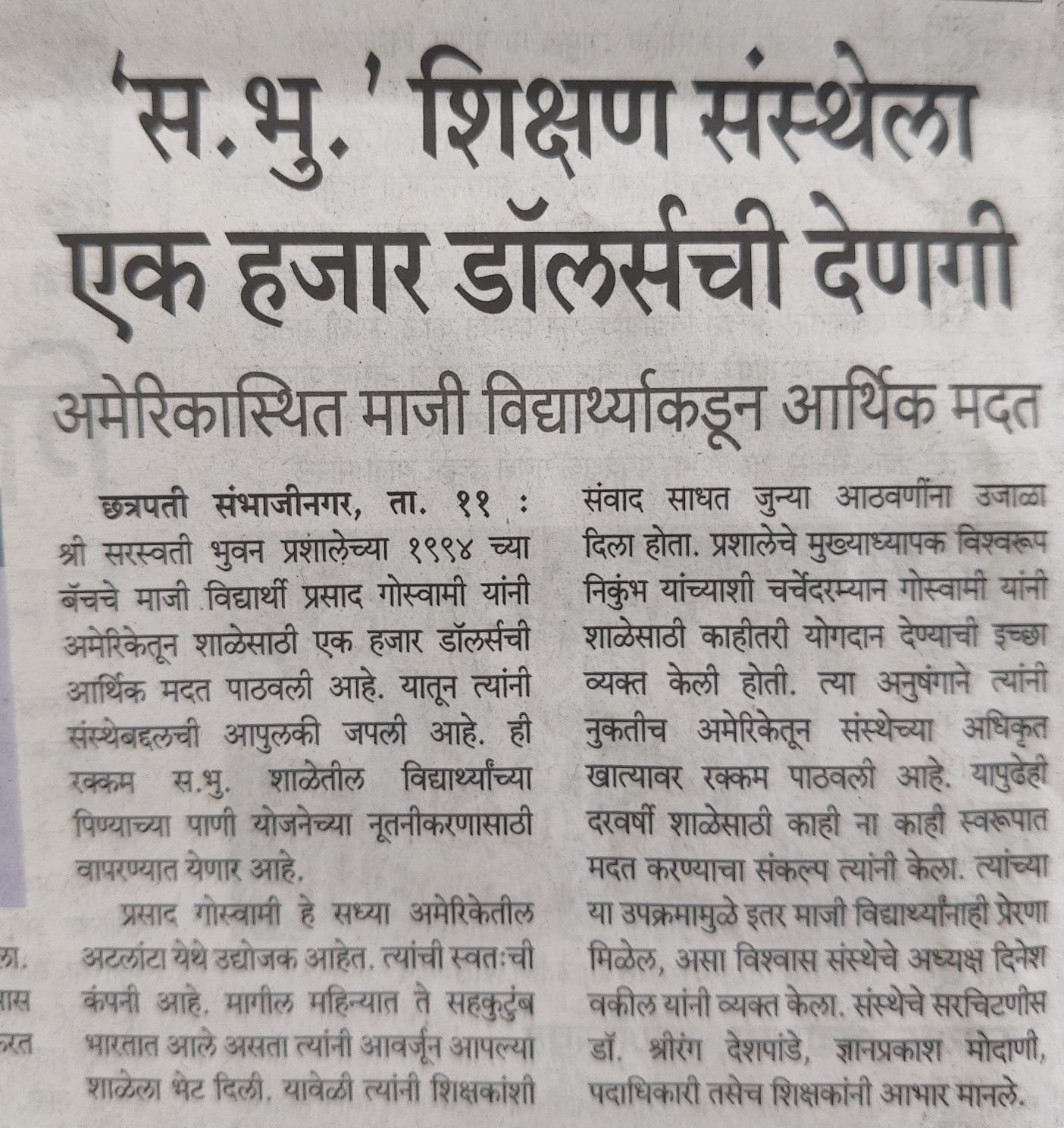 As a co-educational, Marathi-medium institution, the school has consistently upheld high educational standards while nurturing moral integrity, social awareness, and responsible citizenship. Over the decades, Saraswati Bhuvan High School has produced countless alumni who have excelled in diverse fields across India and abroad, contributing meaningfully to society and the nation.